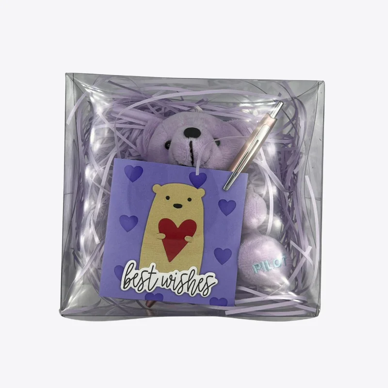 Celebrate special moments with the Year Collectible Bear Gift Set from Pilot. This limited edition set features an adorable purple bear, complete with the Pilot logo on each foot and a heartfelt card to express your best wishes. Each set also includes a premium Acro1000 Pilot Pen.